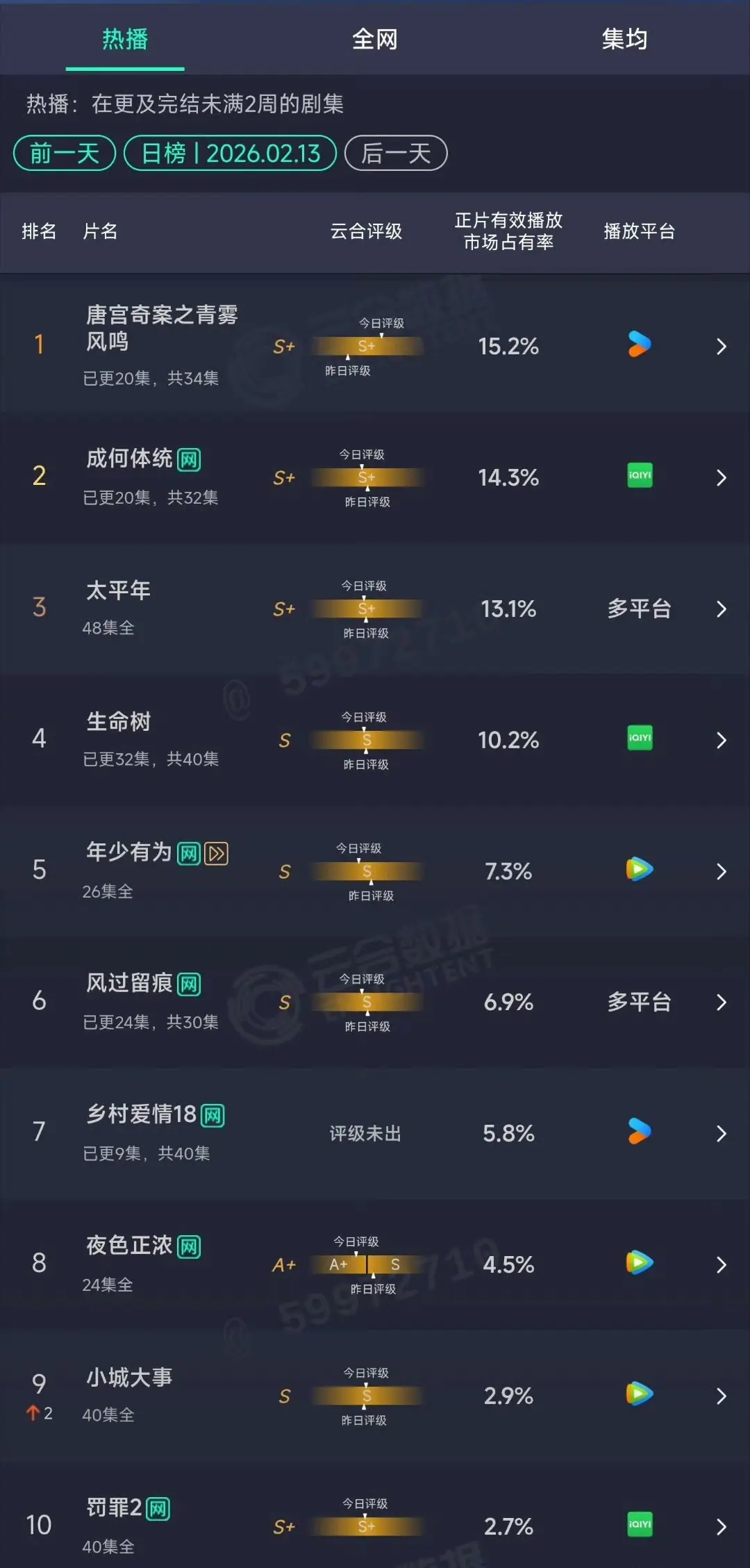 近期电视剧市场迎来新一轮“厮杀”,云合热度榜单前5名都是这个月重点播出的新剧,除了《年少有为》和《太平年》刚完结,都还在热播中,这些剧集风格各异,究竟哪部值得追?